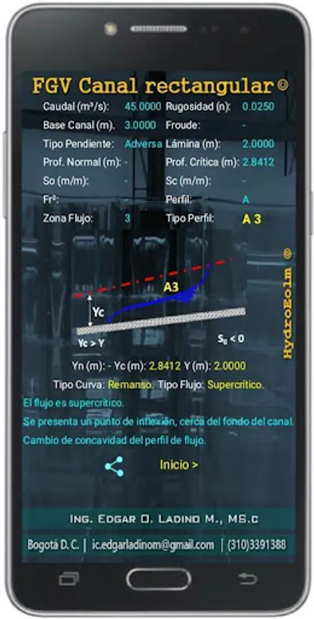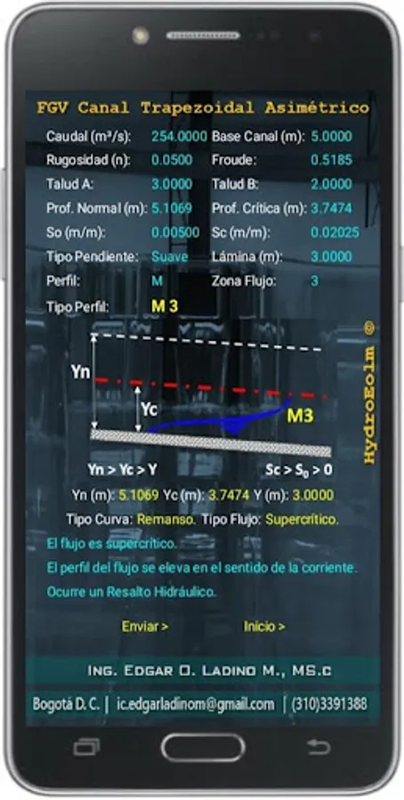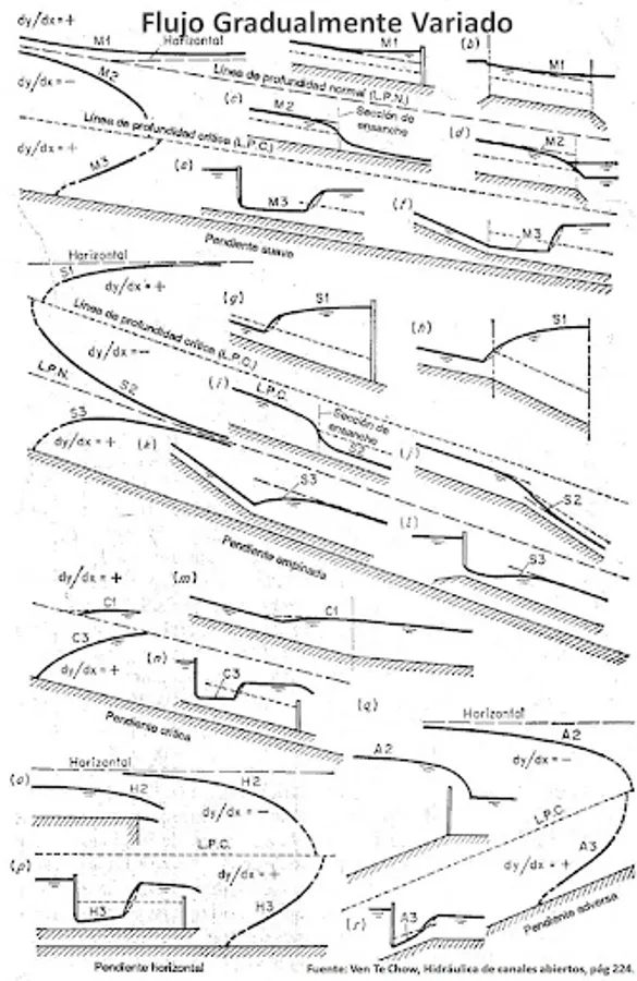 Algorithm developed for the calculation of the profile for Gradually Varied Flow (H2, H3, A2, A3, M1, M2, M3, S1, S2, S3, C1, C2, C3), Newton - Raphson was used for the depth iteration normal and critical for 7 prismatic sections.