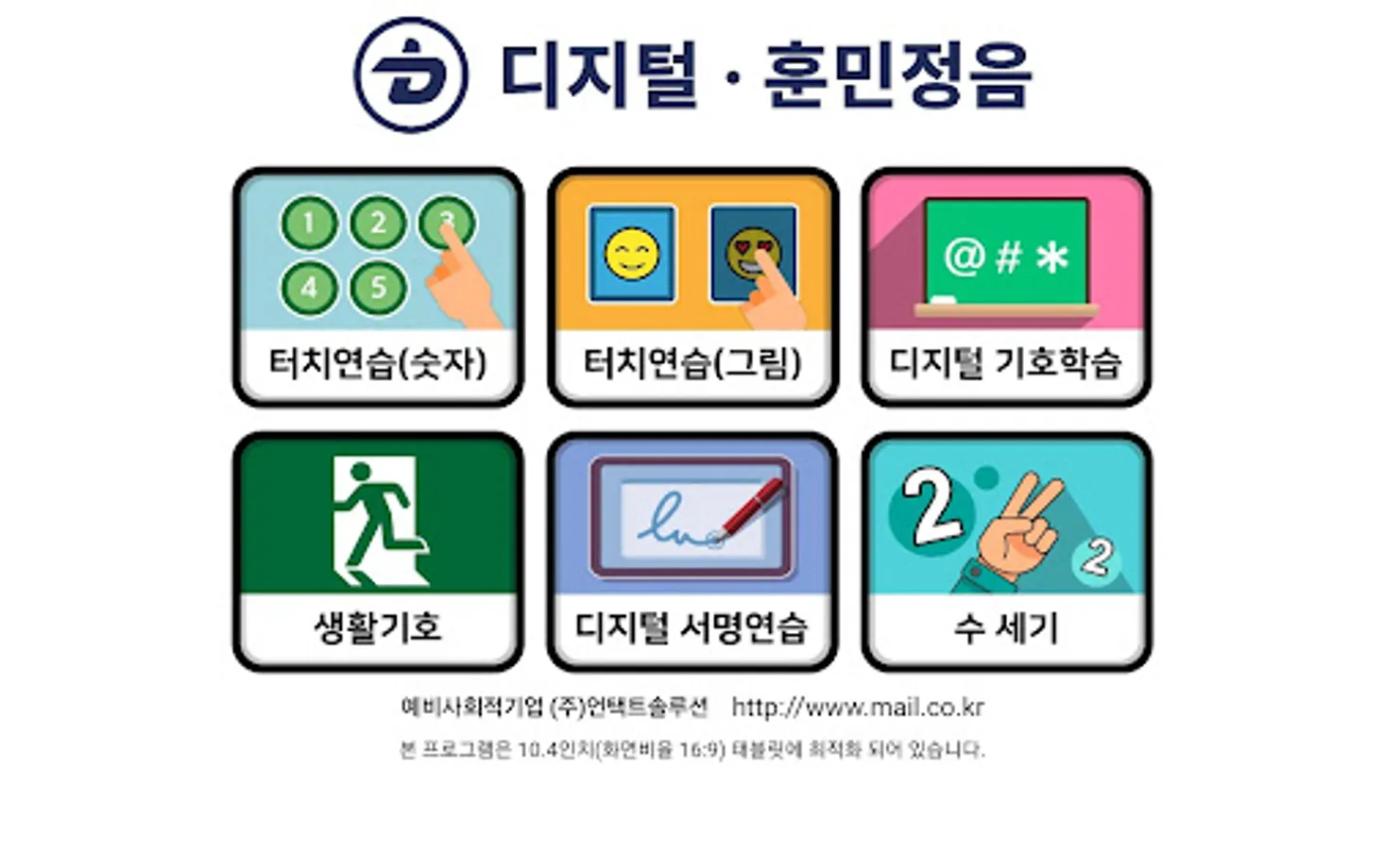 This is Digital Hunminjeongeum, a digital basic education program for those who have difficulty using digital devices. This program is designed for the elderly, the disabled, and those who need digital basic education.