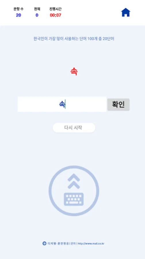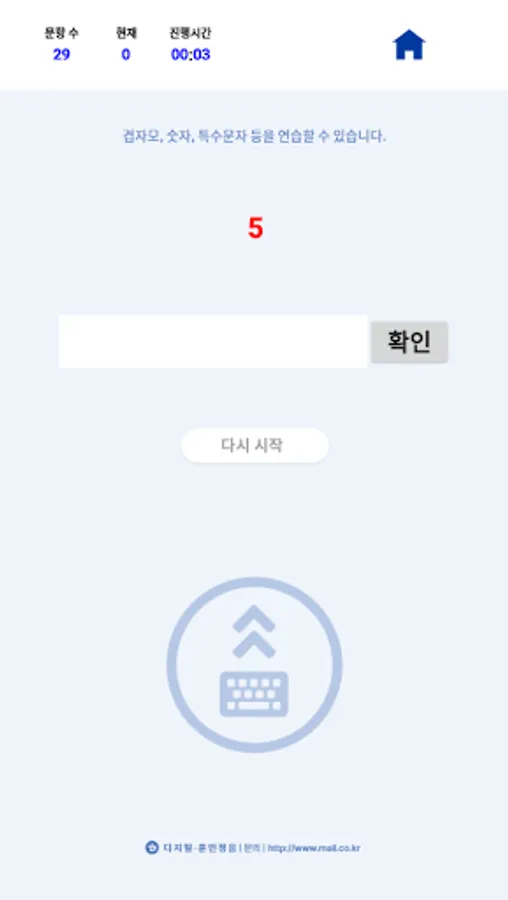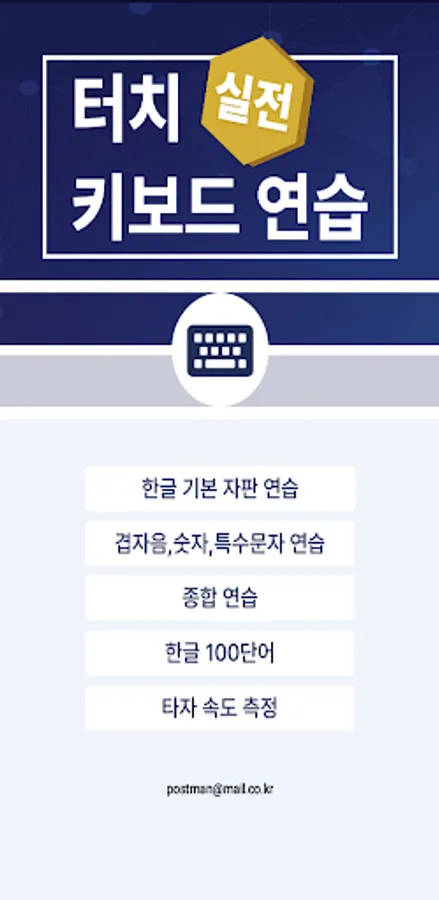 This program can be used by users who want a program that is a little more difficult than the existing keyboard practice program. It is a program to practice the Korean keyboard using the keyboard built into the smartphone. Children, illiterate people, and foreigners can learn Hangul through this program.