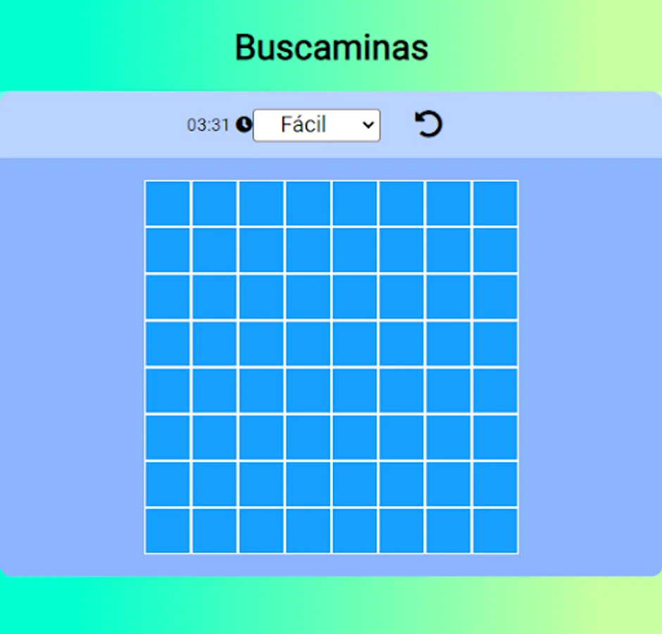 The objective is to discover all the squares that do not contain mines. If we open a space that contains a mine, we have lost the game. If a cell is discovered that does not contain mines, it will display a number indicating how many mines there are in the 8 boxes that surround it. The boxes without surrounding mines will open automatically when you click on them.