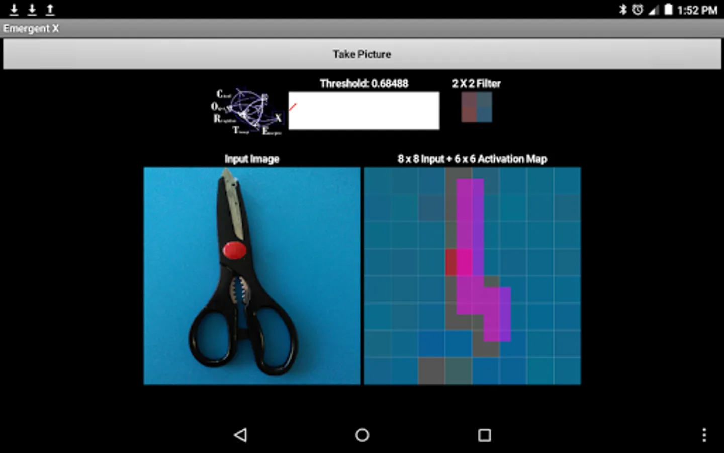 This app allows the user to interactively experiment with and visualize the training of a single neuron (feature detector) in an unsupervised neural network. The user provides the online "training data" via taking photos.
