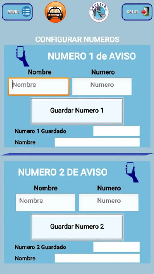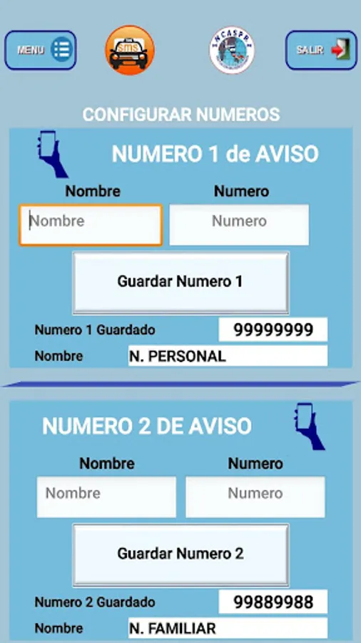 The data can be sent via SMS to one or both pre-programmed numbers, or a WhatsApp contact or quickly call one of these pre-programmed numbers.