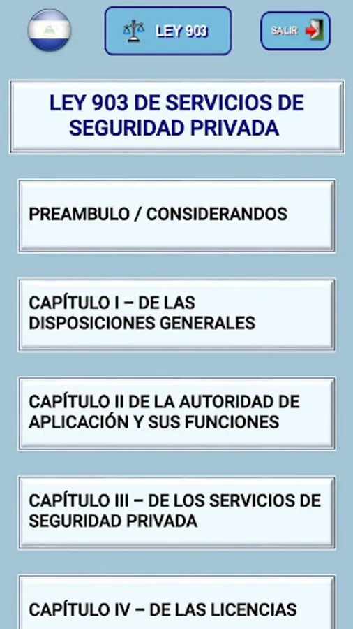 App for all users and providers of private security services within the Republic of Nicaragua, to have available on your Smartphone the requirements, infractions, functions and all aspects that regulate private security.