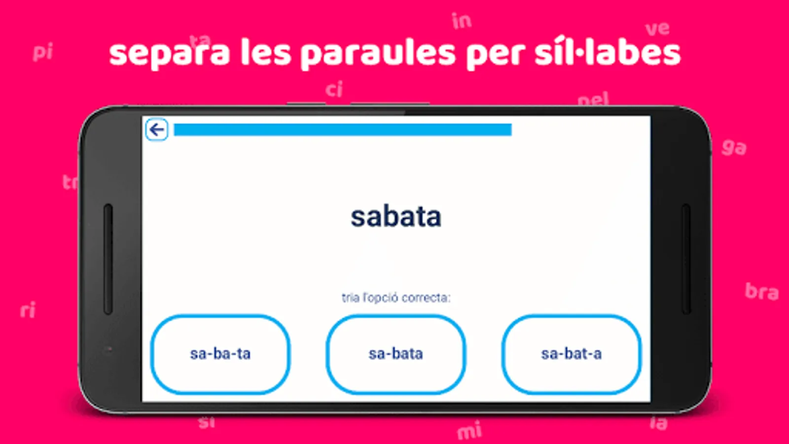 The application has 5 game modes of increasing difficulty that use interactive dynamics and the concept of "gamification" to transform the learning of Catalan and the separation by syllables in a fun game. Here are the 5 game modes included in the app: