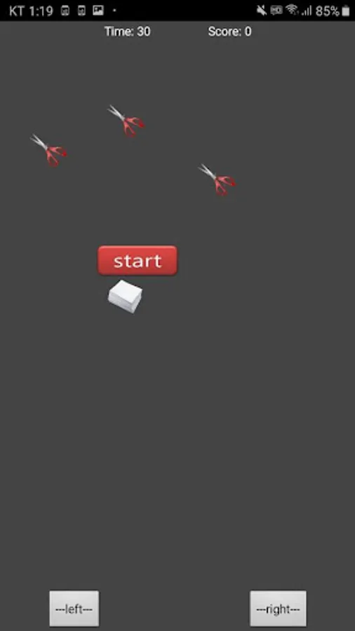 If the paper hits the scissors, the score decreases, and when the scissors hits the floor, the score is added.