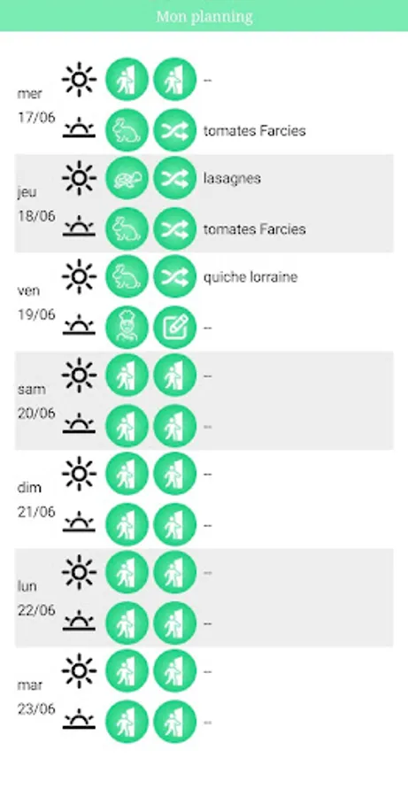 Simply enter your favorite recipes in the list, indicating if they are quick or long to prepare, and let planM guide you.