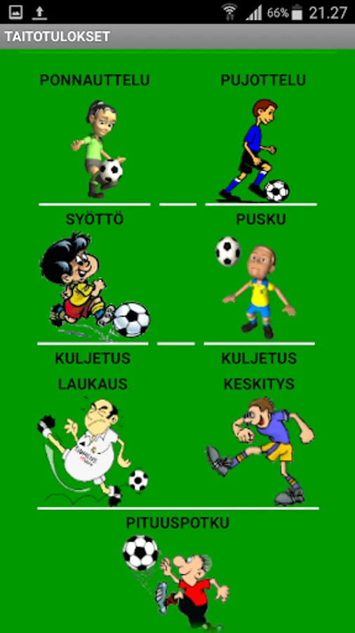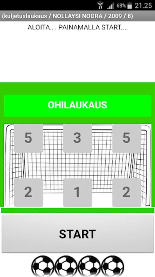 Football skill race types, application deployment and results with rules for saving. Ponnauttelu, supply, slalom, bulldozers, transportation-shot, transportation, concentration, and the length of the butt kicking.