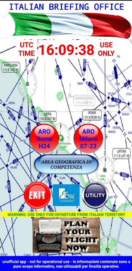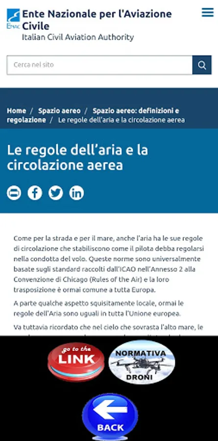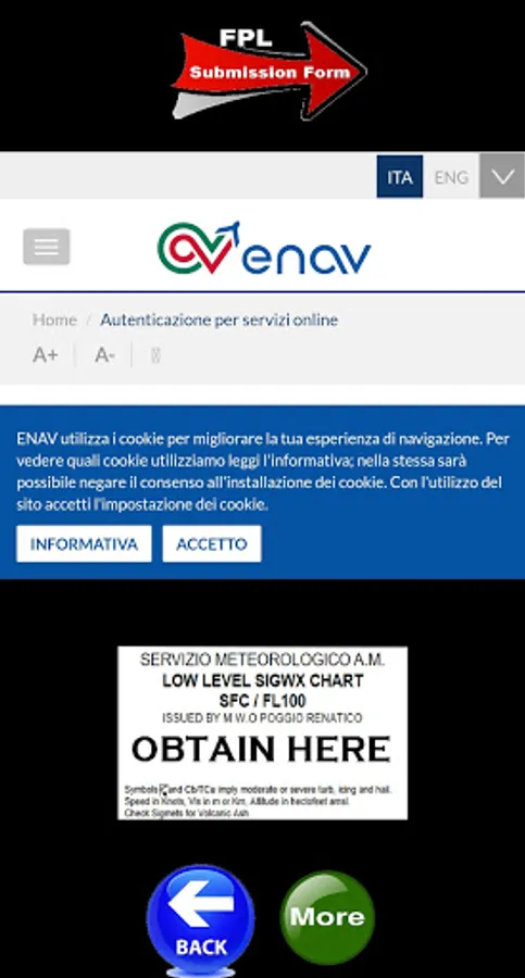 - obtain information from the official links contained in the APP, ENAC regulations (Rules of the Air, ULAC and DRONI), ENAV Self Briefing, NOP Eurocontrol and the significant weather map relating to the low flight levels of the A.M. ;