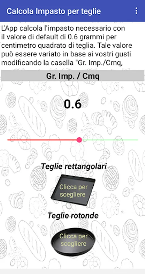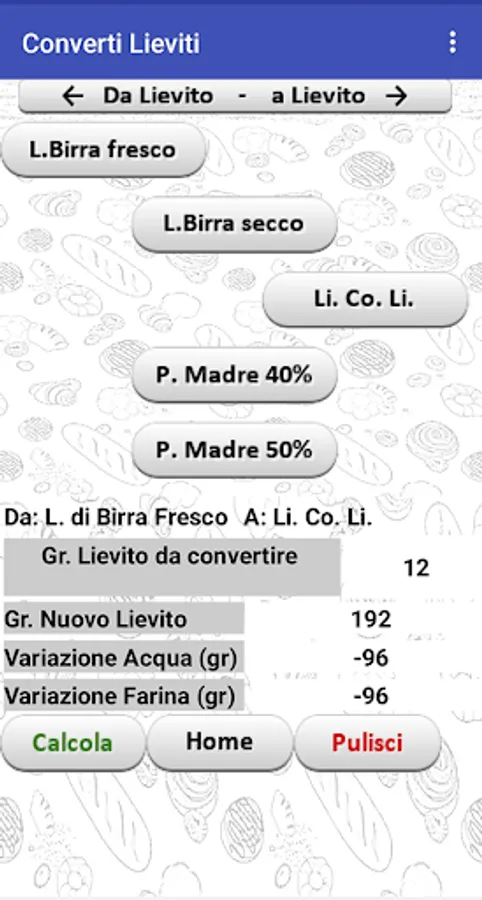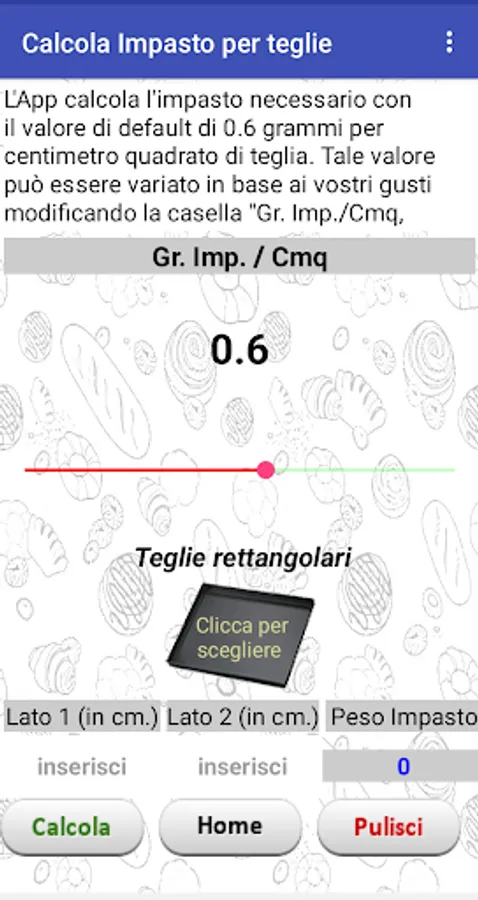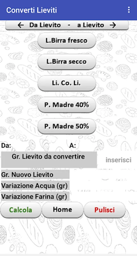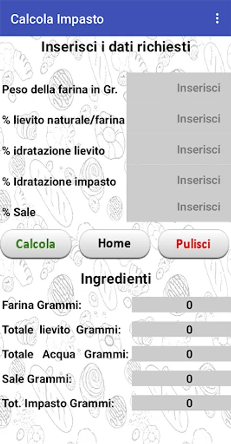 It allows to calculate the ingredients of bread, pizza and focaccia, inserting user preferences