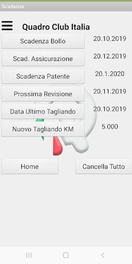 The app allows you to enter the deadlines of Stamp, Insurance and other deadlines. a few days before the deadline an expiration notice will be displayed.