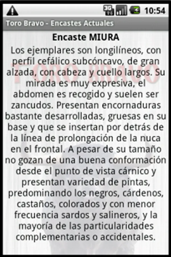 TORO BRAVO ... The first application of Google Play that reveals the bull. Its origins, foundational caste, caste current herds, their irons and currencies. It also has a glossary of terms that will allow us to more fully understand the bull.