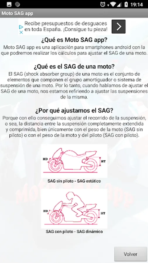 Moto SAG app + is an application for android smartphones with which we can adjust the SAG of a motorcycle.