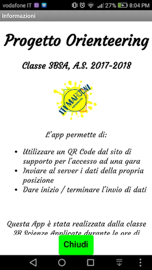 This app has been realized as project of Alternation School-Work from a class of Applicated Science of the school "G.Marconi" from Pontedera (PI) using the development tool App Inventor 2.