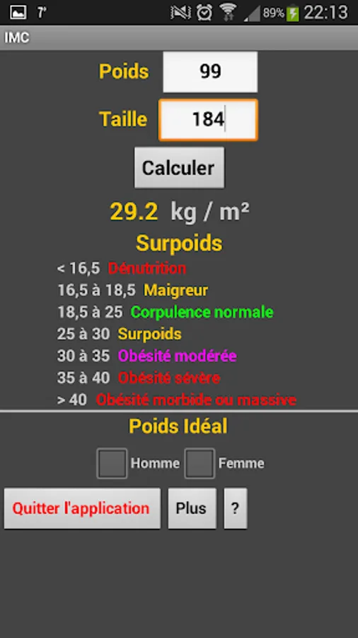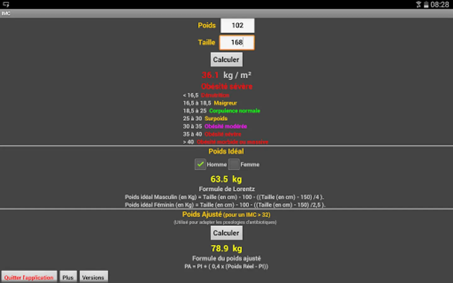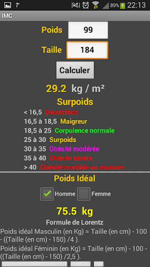 Calculating the ideal weight according to the formula of Lorentz