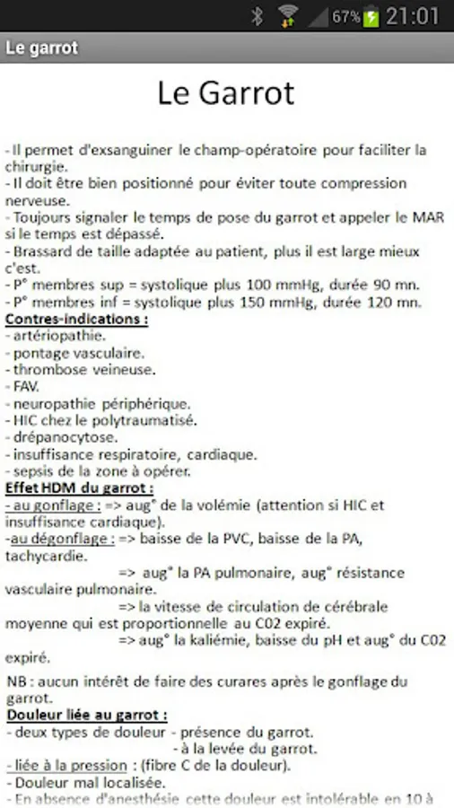This application contains practical sheets as various reminders useful in anesthesia.
