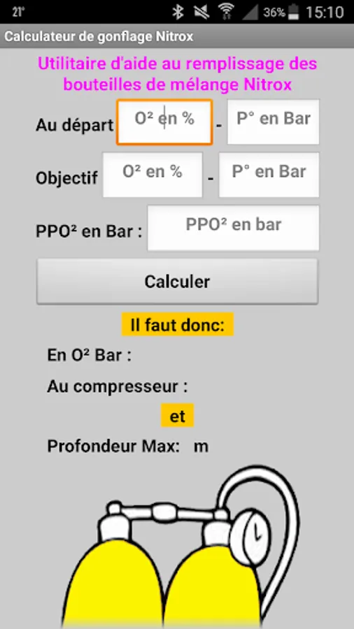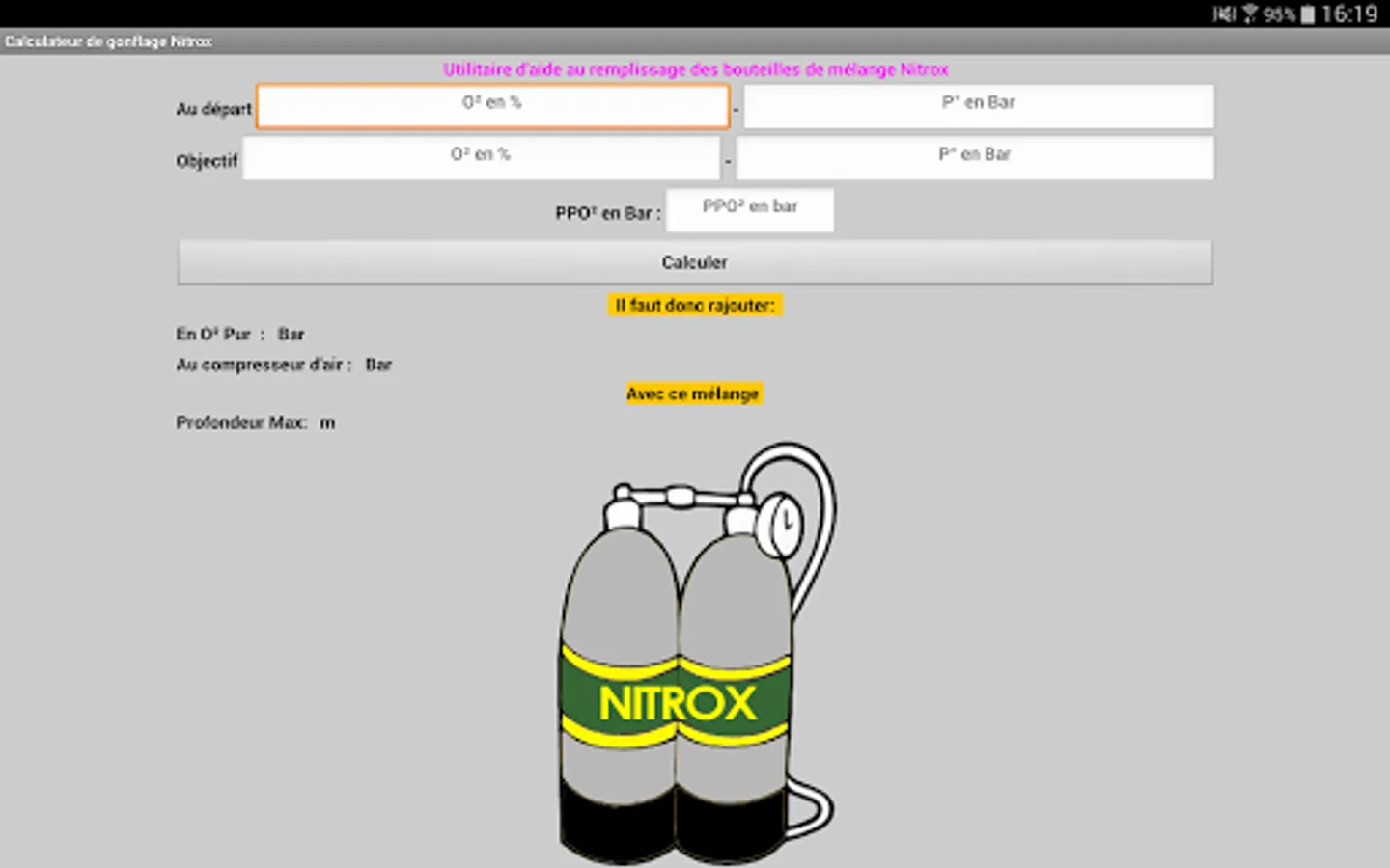 Nitrox inflation calculator for mixing cylinders. Air/O²