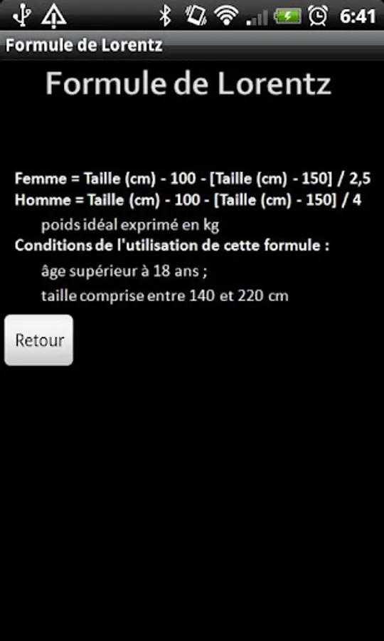 Quickly calculates the BMI, the ideal weight of the patient according to its size and sex thanks to the formula of Lorenz.