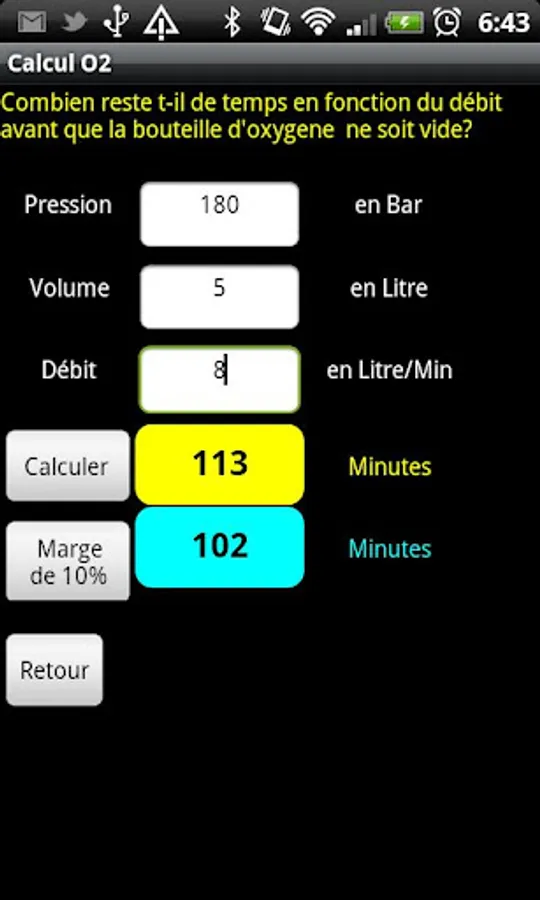 Used to calculate the time remaining in oxygen cylinders depending on the flow, the volume of the bottle and the pressure. Very useful during transfers