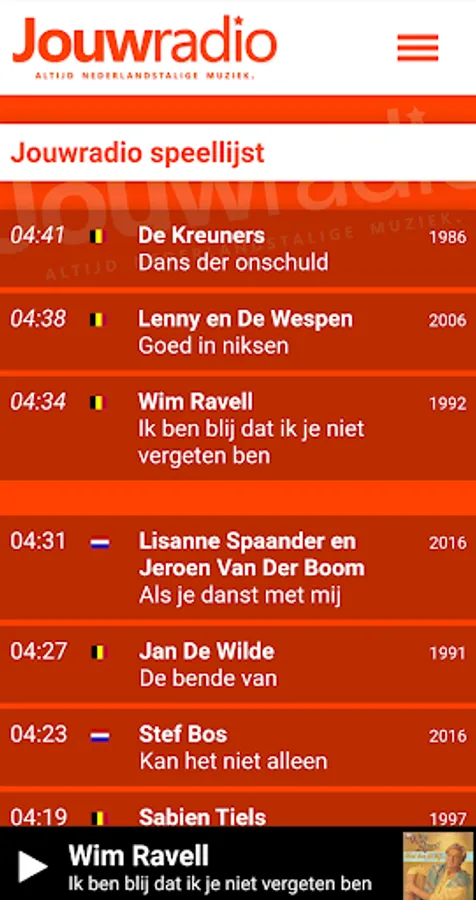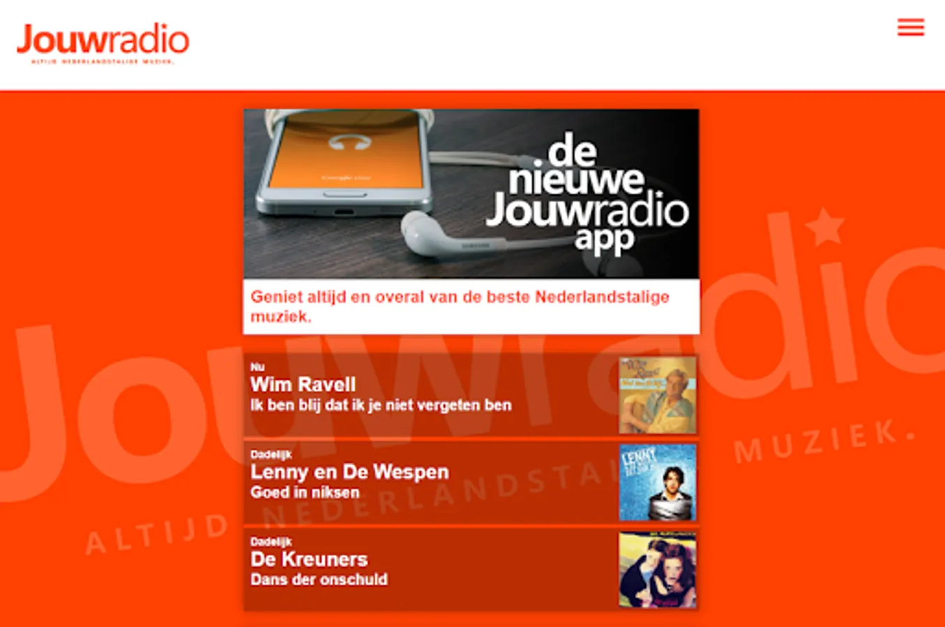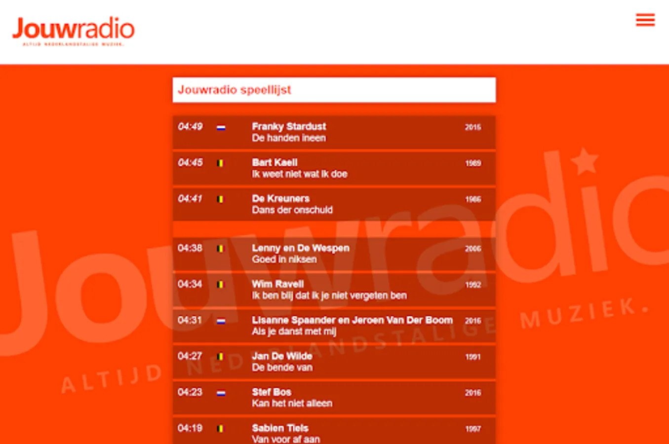 Jouwradio is the Flemish digital radio station with always Dutch-language music. Since 2006 we bring the biggest hits of the best Flemish and Dutch artists. With the Jouwradio app you can hear us always and everywhere in crystal clear digital quality.