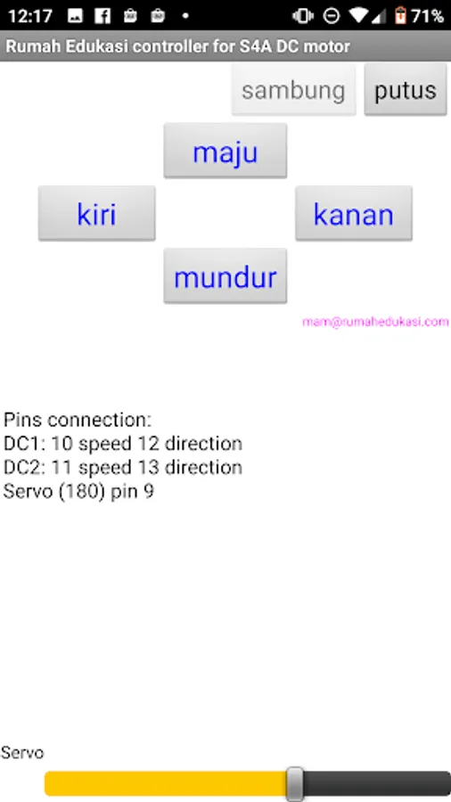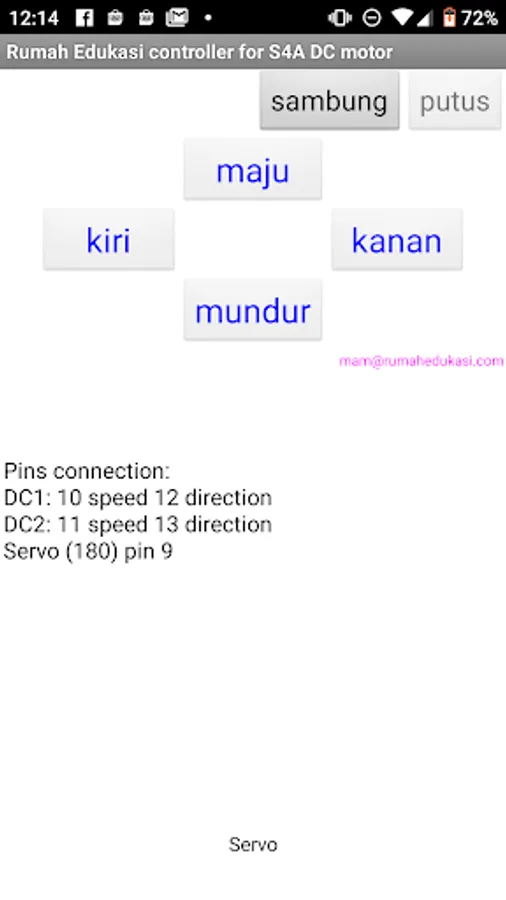 DC motor 1 is connected to pin 10 for speed control and pin 12 for direction (CW / CCW)