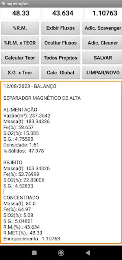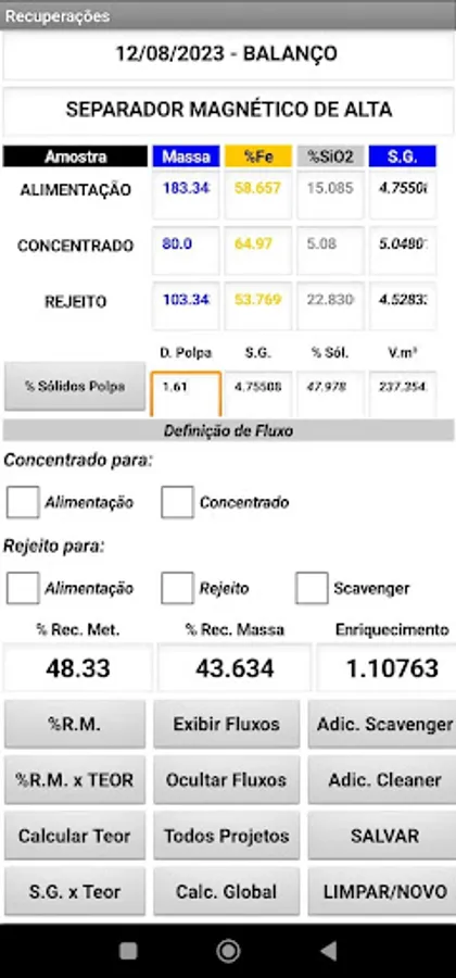 All of this is also possible with Excel and a little knowledge of Ore Treatment or Expensive Simulators, but now it is possible to do it on your cell phone and close a balance sheet with samples in 10 minutes or less;