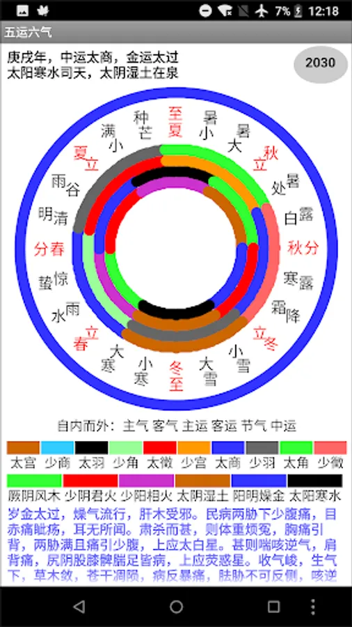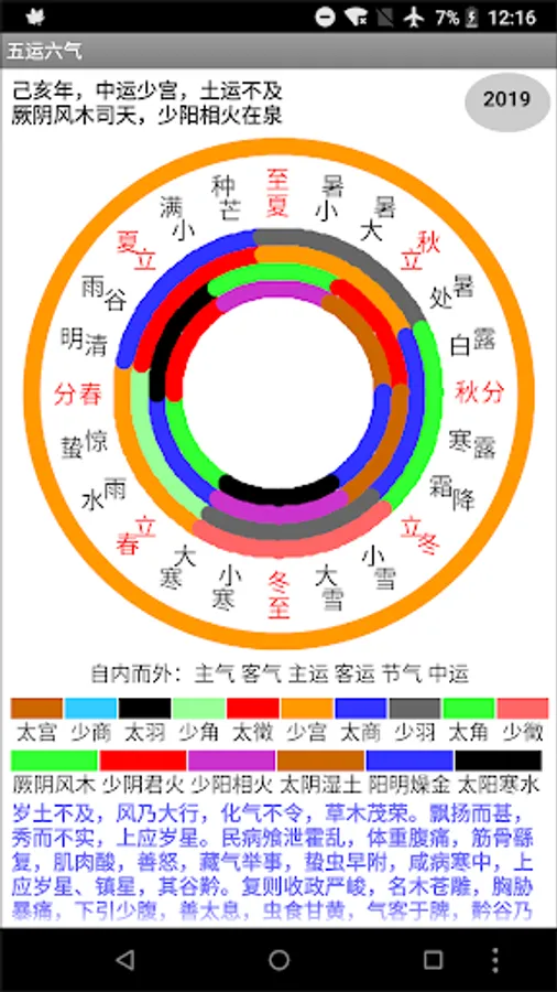 10 days of dry cooperation with 12 ground support, composed of the 60-digit counting symbol, used in ancient China as the chronograph symbol, the year, month, day, and hour constitute the "eight characters" of each moment. Based on these time scales, the ancient sages observed and recorded natural phenomena, and summed up a set of laws of climate, phenology, and disease with time. They were recorded in the Yellow Emperor's Internal Classics in the Han Dynasty. This application uses 24 solar terms as the reference coordinates to display the changes of the commander of the middle, main, passenger, main and polite in different years, and supplemented by the "Yellow Emperor's Internal Economics". The explanation of the kind of Zhongyun. The summary of the ancients may not be entirely suitable for the present, but it is at least a reference point for us to observe nature.