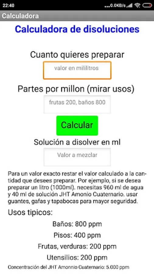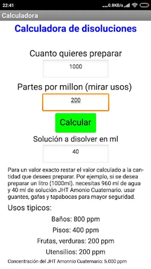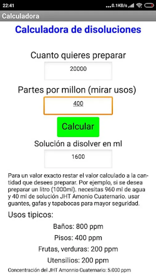 Fifth generation quaternary ammonium JHT dissolution calculator.