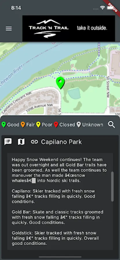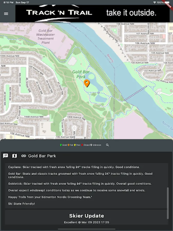 Brought to you by the Track N Trail Ski Shop in Edmonton, this app provides cross country ski trail conditions for the Edmonton area, pooled from multiple sources on the internet.
