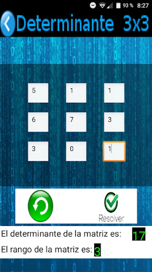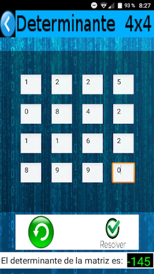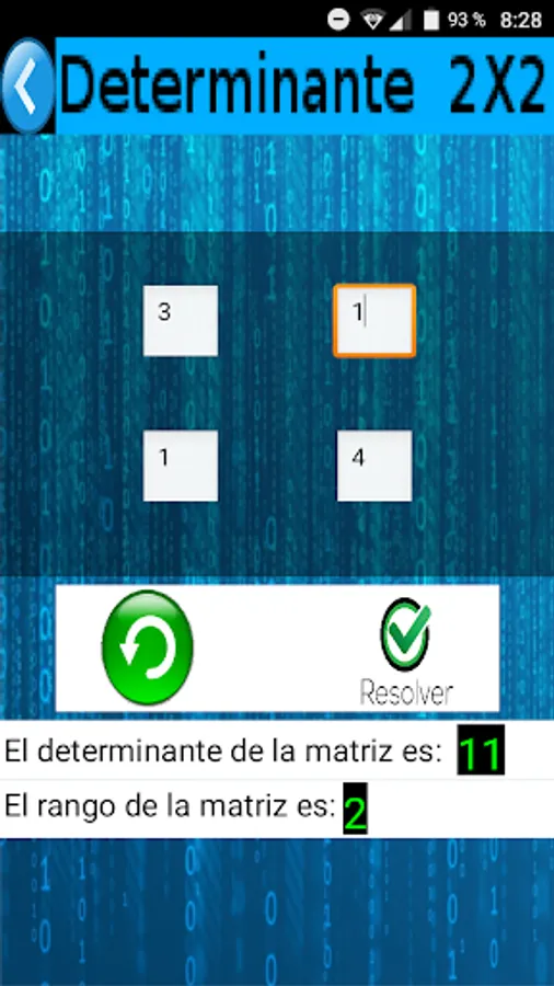 This is an application capable of calculating the determinant of any matrix 2x2, 3x3 and 4x4. It is also able to calculate the rengo of 2x2 and 3x3 matrices.