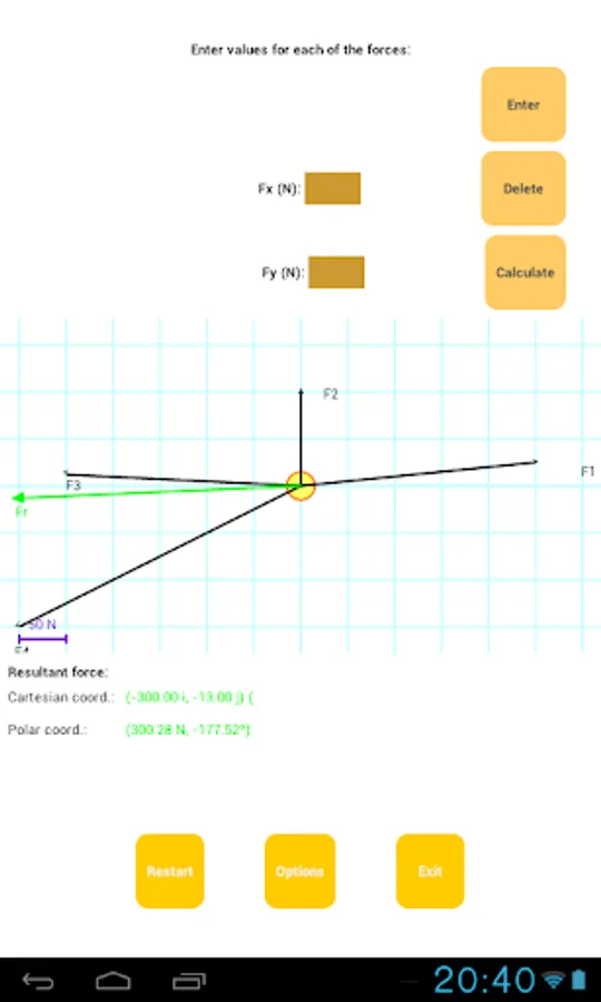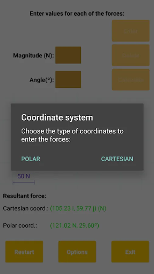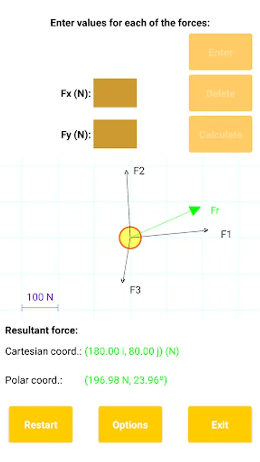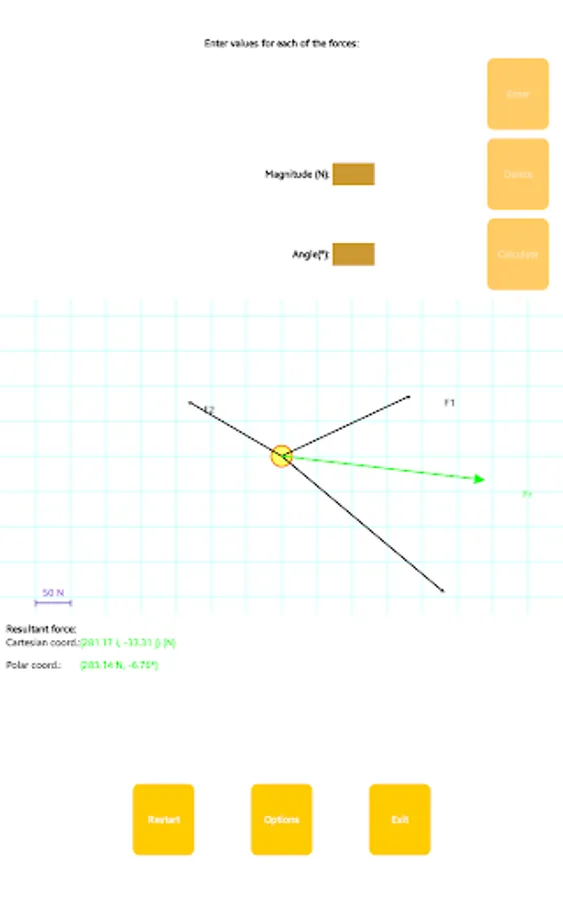 - The forces can be entered in Cartesian coordinates or in polar coordinates.