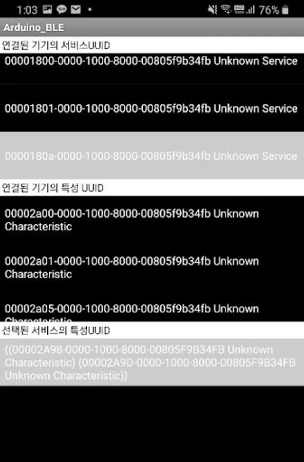 You can check the UUID of the connected BLE device and send and receive various signals to and from the UUID.