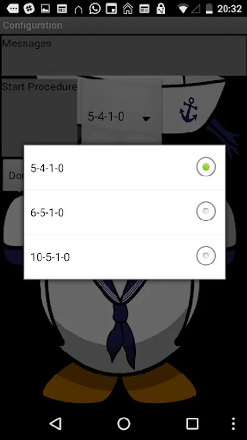 This timer counts down when starting with audio feedback. You can configure the most common start situations and modify the minutes and seconds as neccessary due to missing flags and signals and timing....