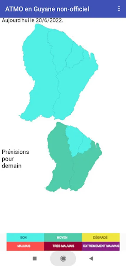 Unofficial application for air quality in Guyana with ATMO index of the day and the forecast for the next day.