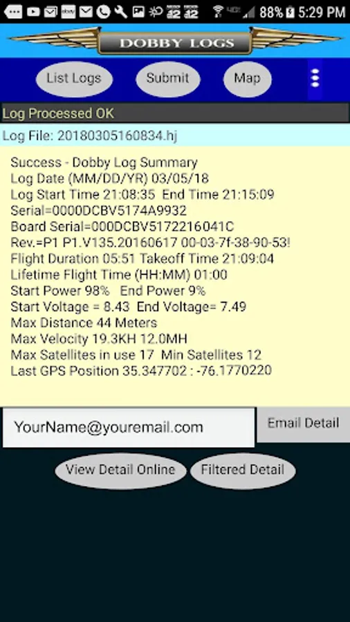 You will see a summary of the flight and will have the ability to view detailed detailed information of the flight as well as the flight path on Google Earth. You can also download detail information files of the flight.