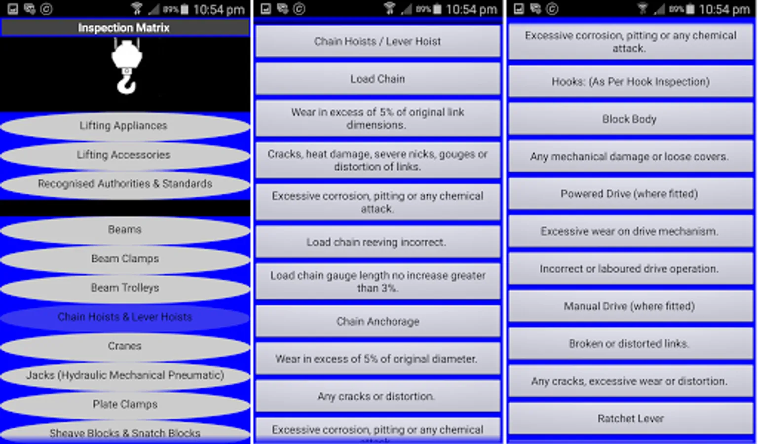 Due to the many varying designs of lifting equipment & safety recommendation for different industry sectors, not all aspects of the inspection criteria will be covered.