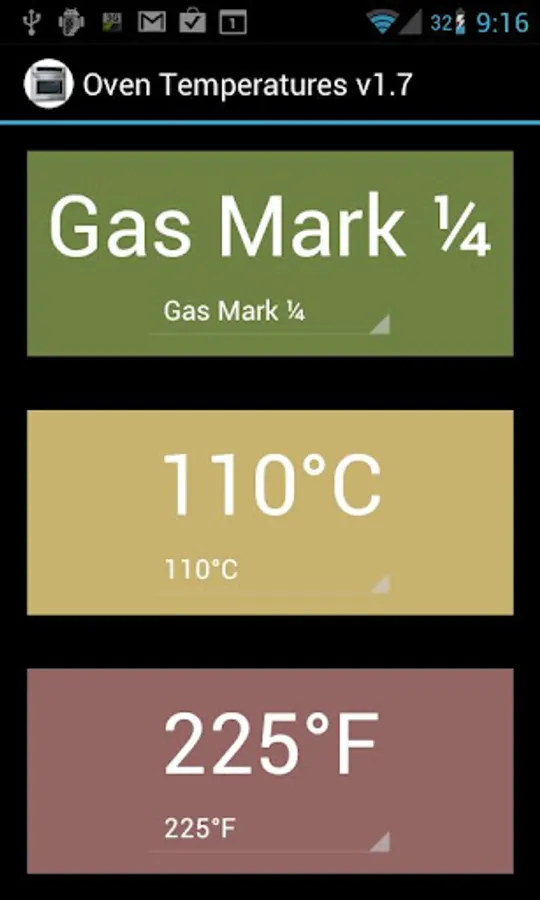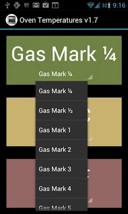 This converter converts between Gas Mark, Celsius and Fahrenheit