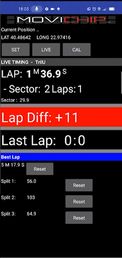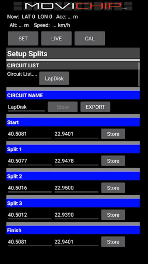 Enter your GPS start point, at least one split point (up to three split points can be entered) and the finish point. Lap timer starts automatically when you cross the start point.