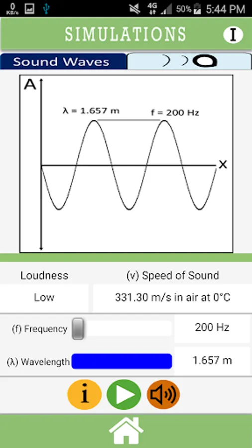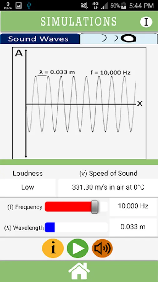 6. Simulations. View graphical representation of sound waves. Manipulate the graph by changing the wavelengths, frequency and wave speed.