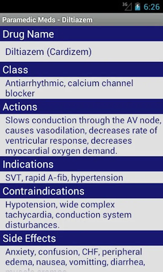 Paramedic Meds is a great tool for medics in the field. This medical app contains nearly 100 of the most common used drugs and drips for quick reference at your finger tips. It also includes calculators to give you either mL/hr or gtt/min. With each drug you will quickly be able to see its class, action, indications, contraindications, precautions, side effects, routes, adult dosing, and pediatric dosing. Paramedic Meds also gives you the standard infusion rates for certain medications.