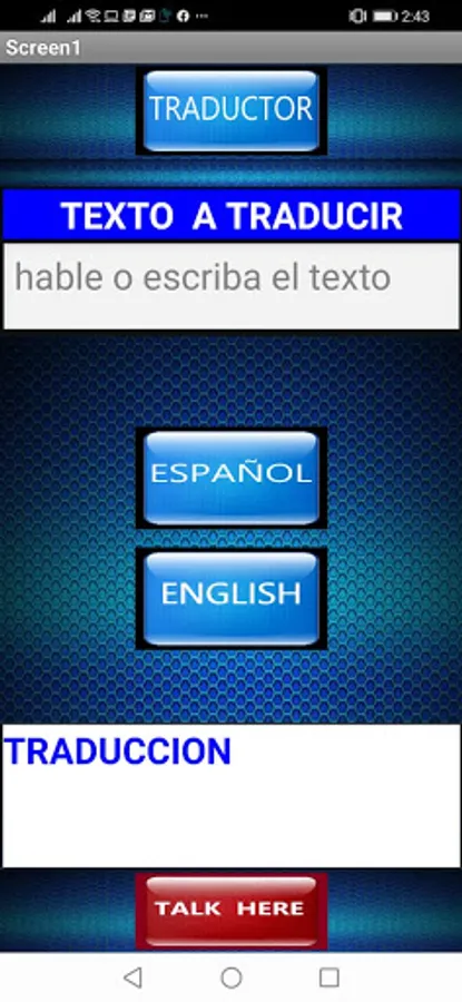 Translator es una aplicación que puede traducir el idioma español al ingles y viceversa tanto escrito como hablado por reconocimiento de voz, y es útil para aprender estos dos idiomas mencionados anteriormente, tanto para el que solo para los de lenguaje ingles como español.