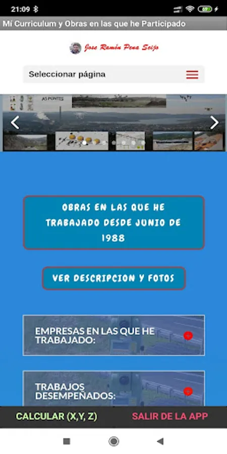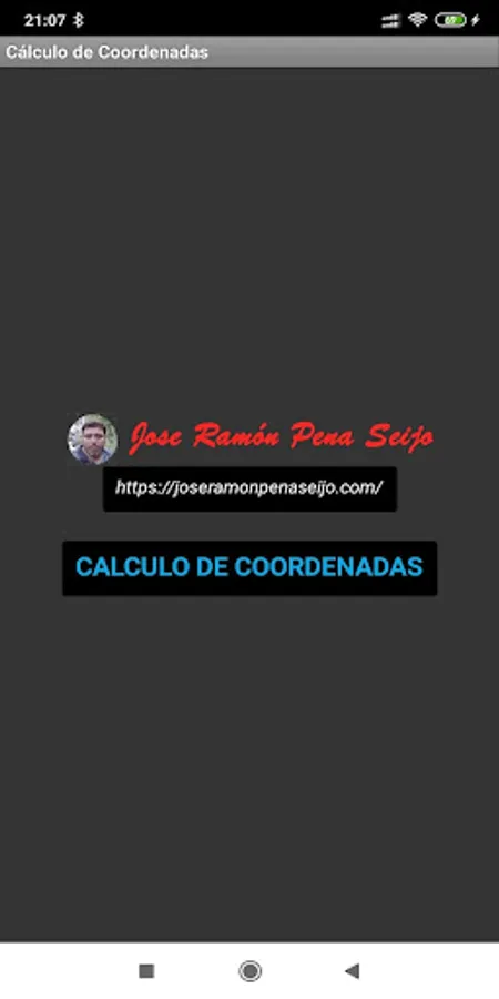 Below you will see a button with the name of the Application "CALCULATION OF COORDINATES", if you press it you will immediately access the calculation of them. In case of not doing it after three seconds it will open automatically.