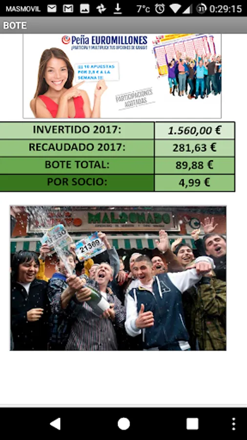 The EuroMillions rock is formed by several partners, and this app will be able to check the results of the weekly draw and the pot accumulated and the state of weekly payments each partner. This rock is private.