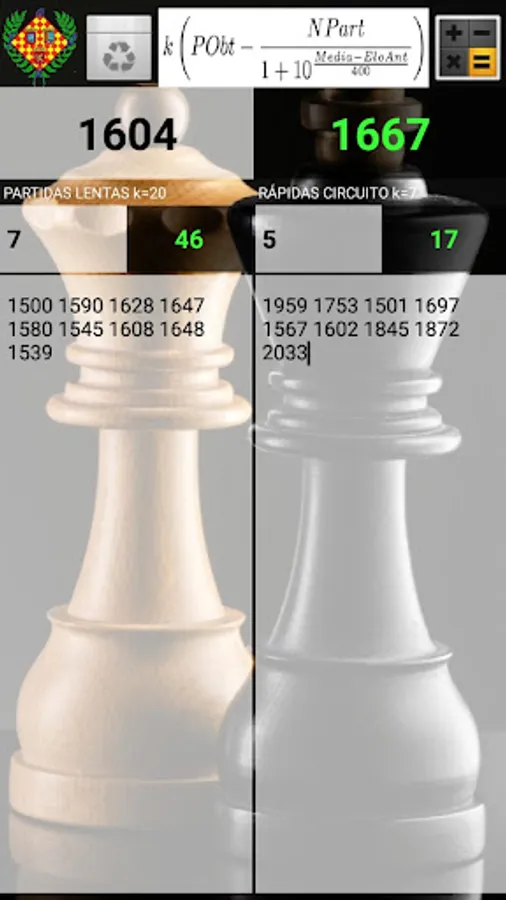 Elo FADA will be computed with K = 20 those games played in Aragon territory of standard game rhythm and with K = 7 the games played in quick chess tournaments valid for the Aragonese Circuit.