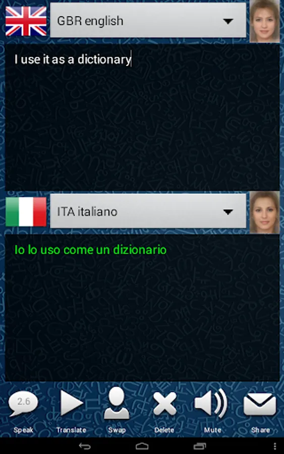 Very simple application to talk in another language, no complicated screens or settings.