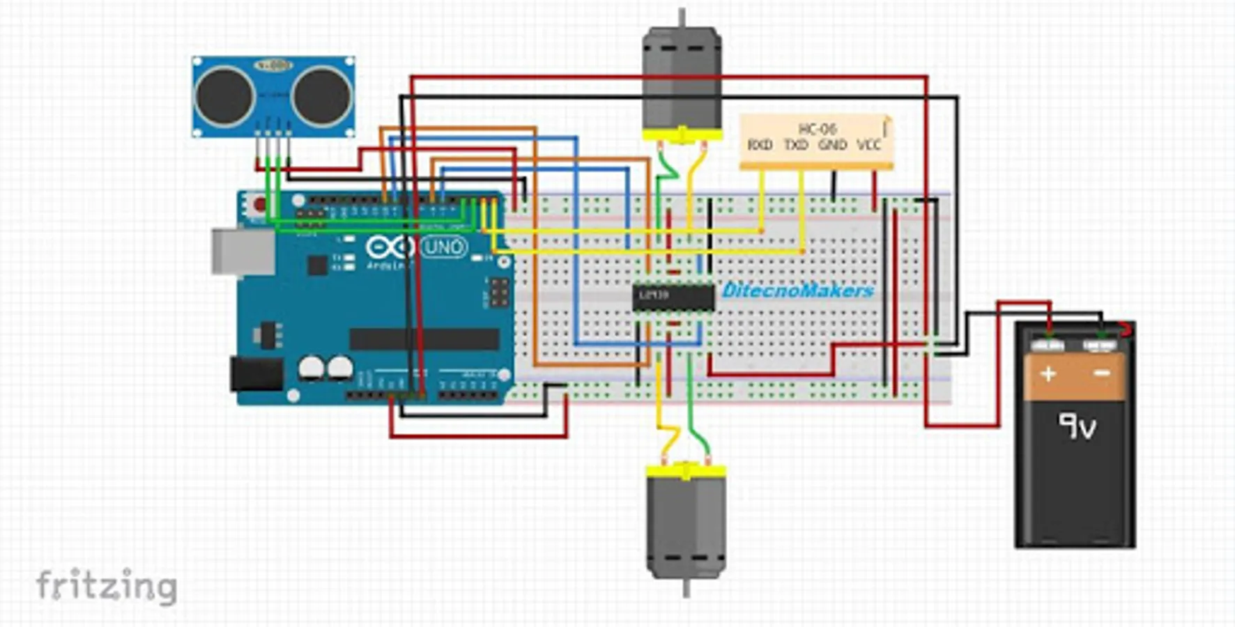 Using this application, you can drive a controlled car with an Arduino board via bluetooth arrow controls, or link it to an ultrasound and avoid obstacles. It is really useful to learn how to use the Arduino board, the ultrasound module and the bluetooth module.