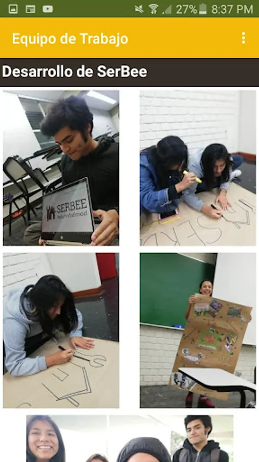 Serbee is an organization undertaking. Our team is made up of 5 students of General Studies Letters: Andrea Arroyo, Milagros Onofre, Rodrigo Olortegui, Georgina Rojas and Hugo Rodríguez, who thanks to the knowledge received by the Management of Organizations course we have been able to initiate and promote this project. In Peru, there are indicators and statistics regarding the level of use of technologies of the population; These studies are published mostly in articles and news. Thus, in a newspaper publication, we were able to identify the Peruvian reality regarding the use of mobile technologies: "Peru: 9 out of 10 people connected to the internet have a smartphone", this wording shows that the average Peruvian user has 17 applications on his device of mobile phones (Gestión, 2016). That is, the level of use of smartphones or similar is high in our country. Likewise, we identify the absence of a safe contact with electricians, installers, locksmiths, carpenters and plumbers, who can help the families of Lima with the various contingencies and breakdowns that may arise in their homes. That is why we developed surveys in our university on the use of applications for contact with specialists in technical repair services related to the problems in the home mentioned above. Through a survey conducted by SerBee, it was found that 78.8% (see Annex 1) is willing to hire domestic or technical services to solve household problems through applications. In this way, as a result of the evaluations and results, we have innovated in the creation of a digital platform, which operates hand in hand with the free Serbee application, to request this type of services. In just a few steps, those families that require technical services in repair of problems such as electricity, locksmith, carpentry, plumbing and facilities, may contact our allies -experts in their work-