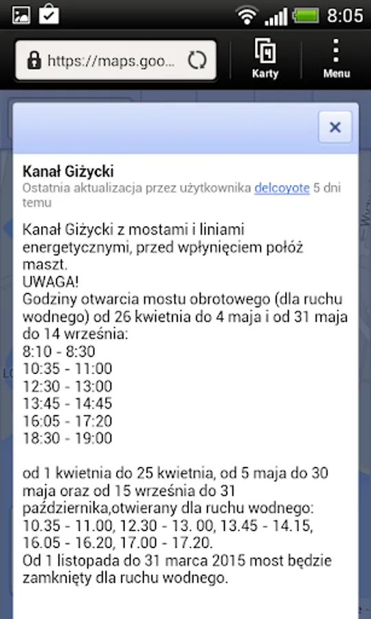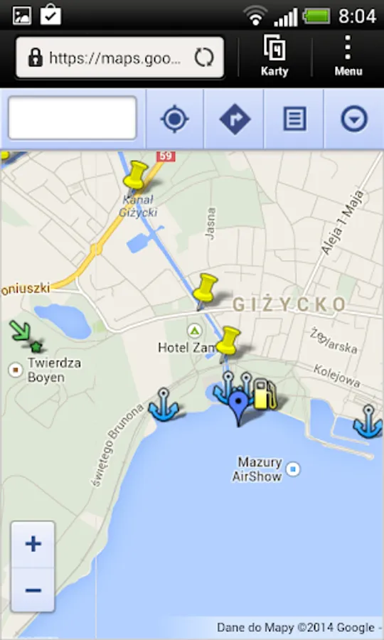 - MAP - nautical map of the basin of the Great Lakes region with marked: selected ports bindugami, canals, bridges, locks, power lines, gas stations, tourist attractions, nature reserves. It is based on google maps. If you do not work properly on your device suggest you open the link: https://www.google.com/maps/d/viewer?mid=1JZFKivJ2U-0383sUvgfMSOVJknE&hl=en_US using the application google maps then you are also an icon of the current position.