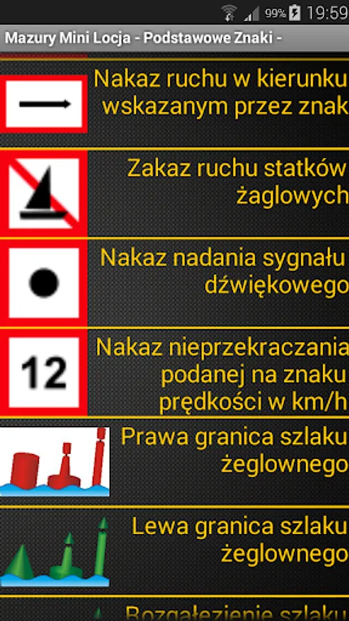 - SIGNS - basic wybyrane shipping marks found on the route of the Great Mazury Lakes and opening hours for boaters swing bridge in Giżycko