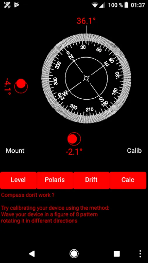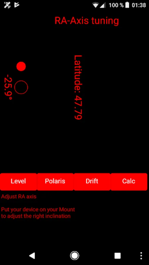 The Polar-Aligner is a simple astronomical application for the northern hemisphere to help you to align your mount easily. It includes basic tools for leveling your equatorial mount (spirit level) and to adjust it to north (compass).