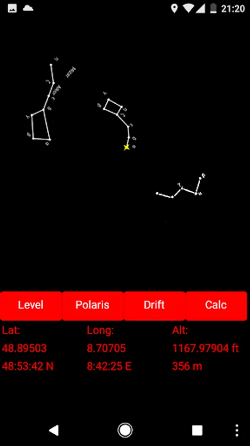 The GPS gives you the most accurate information about your location with the altitude and calculate the position of Polaris and show you graphically the Polaris position or you switch to the northern Sky map and it shows you the Ursa major, Ursa minor and cassiopeia too. (Northern Polar Alignment).